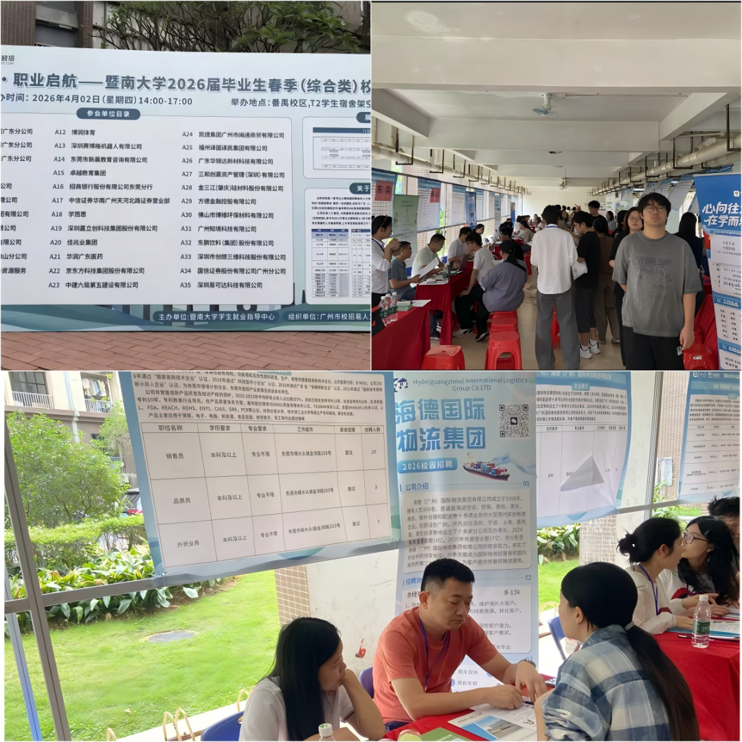 为扎实推进“百万英才汇南粤”行动计划,紧扣高质量发展人才需求,统筹推进高校毕业生就业服务与企业引才用工保障工作,精准搭建校企供需对接桥梁,依托2025年东莞市社会组织发展扶持专项资金,2026年4月2日-14日,东莞市高新技术产业协会(以下简称“协会”)组织10多家企业先后赴暨南大学、华南理工大学、广东工业大学开展人才招聘活动,实现毕业生就业与企业发展双向共赢。