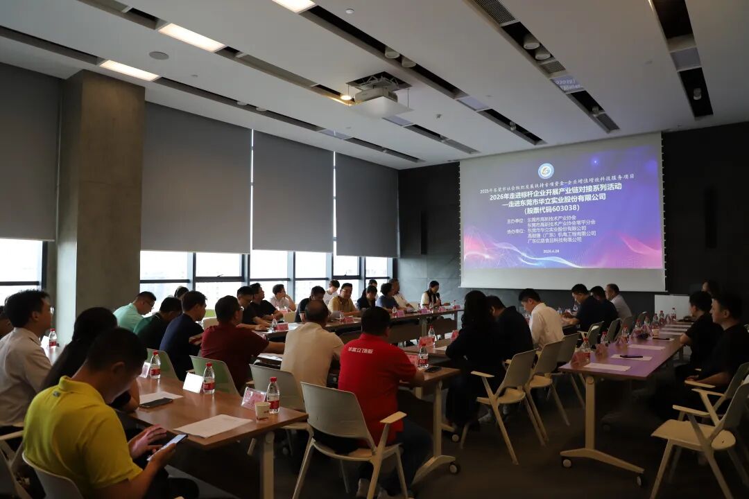 为加强会员企业之间的合作,共建产业生态,依托2025年东莞市社会组织发展扶持专项资金,推动产业资源对接,2026年4月28日下午,东莞市高新技术产业协会(以下简称“协会”)组织会员单位走进标杆企业开展产业链对接系列活动,2026年的第二站,走进上市企业-东莞市华立实业股份有限公司(以下简称“华立股份”),同时邀请理事单位-恩耐捷(广东)机电工程有限公司(以下简称“恩耐捷”)作“节能增效破内卷,实干赋能促发展”主题分享,协会副会长、理(监)事、会员单位及秘书处人员等50多人出席。