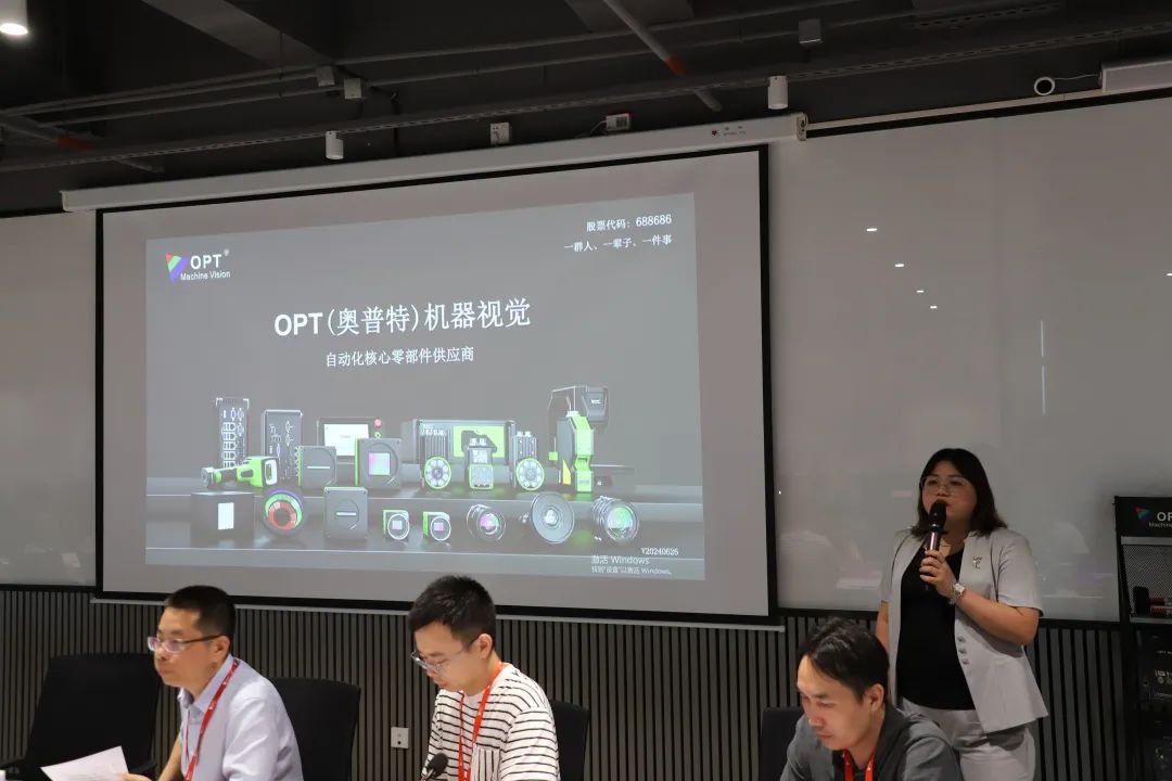 座谈会上,李总主要从企业文化、六大事业部、服务网点、研发实力、产品介绍、应用案例、合作客户、企业优势等内容进行分享,讲述了奥普特在自动化核心零部件领域,经过18年技术沉淀,不断推陈出新,开发的光学产品和解决方案已应用于20多个国家和地区,全球范围设立有30多个服务网点,已服务全球客户超过15000家,项目应案例超过53000个,现已成为中国乃至世界机器视觉应用技术领先者。