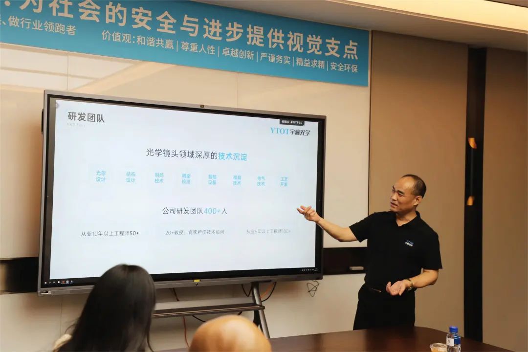 会后,宇瞳光学财务中心总经理管秋生带领参会人员一行参观宇瞳光学公司展厅和CNAS实验室,让大家与镜头、镜片等产品近距离接触,直观感受光学行业的独特魅力。宇瞳光学以光学产品为核心,主要业务分为安全防范、汽车光学、车载镜头、应用光学及教育五大板块,为全球客户提供光学产品和技术支持。