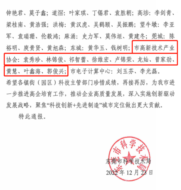 2、东莞市高新技术产业协会2022年度十大亮点工作。