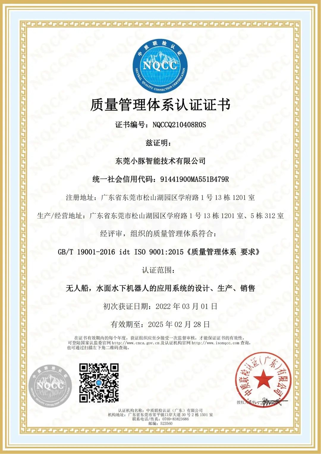 ▲质量管理体系认证证书