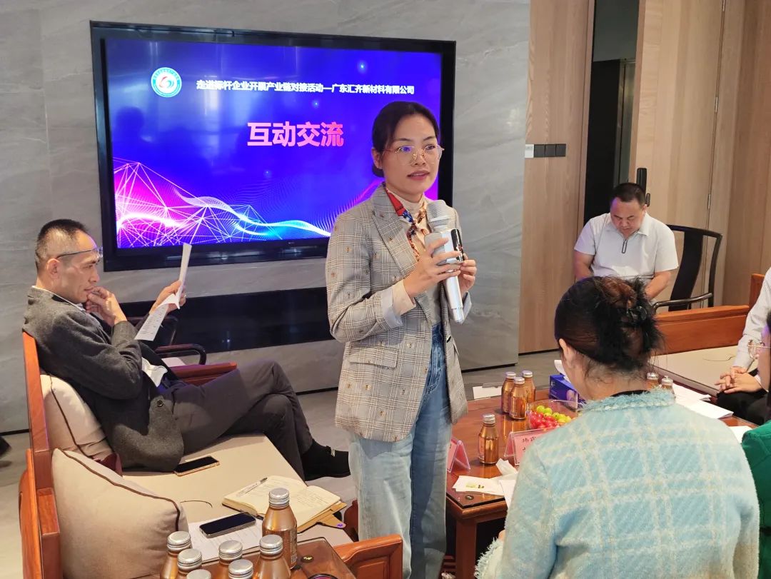 产业链对接环节,参会人员就职称申报、品牌工程师、标准、绿色制造等内容展开交流,以及向汇齐新材料在企业管理、技术创新、人才建设和转型升级等方面取经,大家踊跃介绍自己的企业、产品和服务,现场氛围轻松融洽,同时表示感谢协会提供这样一个交流合作的平台,促进企业间的交流学习,实现互利共赢。