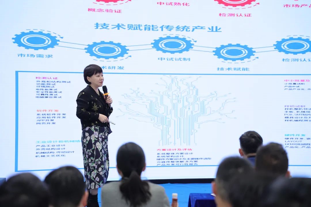 中关村硬创集团程静董事长为本次活动致辞,她表示,中关村作为中国最具活力的创新高地之一,是我国创新发展的一面旗帜。为融合中关村研发资源优势和东莞先进制造基础,中关村硬创集团与东莞市科技局共建“东莞中关村智造中试基地”,目标是建设成为“立足东莞市、链接中关村、辐射粤港澳”,提供“中试研发、生产制造、技术经纪”等服务的“跨区域、网络化”科技创新平台。