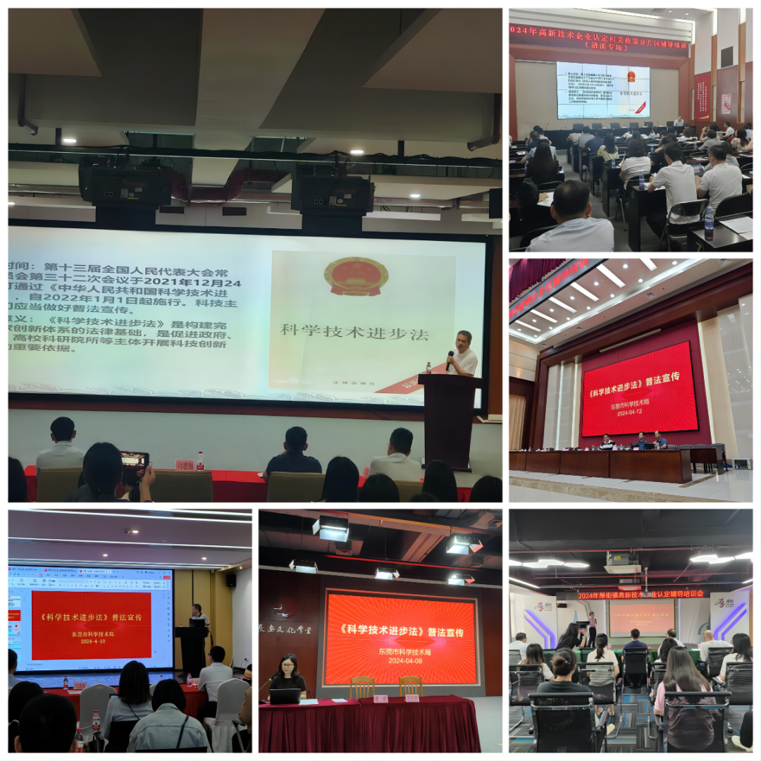 一直以来,市高企业协会高度重视普法工作,充分发挥协会企业会员多、组织活动多的便利条件,积极开展普法宣传。2024年4月9日-17日期间,协会分别在长安、松山湖、寮步、东城、厚街、塘厦、常平、万江、清溪、桥头开展高新技术企业认定相关政策第一轮分片区辅导培训的现场进行了普法宣传。