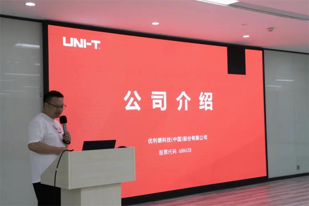 优利德人力资源中心总监杨正军代表优利德对出席活动的参会人员表示欢迎和感谢,并带领参会人员一行参观优利德企业文化厅、产品展示厅,全面了解优利德的发展历程、技术实力以及产品在教育、科研、通讯等领域方面所取得的成就。优利德向全球用户提供包括通用仪表、专业仪表、测试仪器、温度及环境测试仪表等产品,并提供多元化测试测量综合解决方案。公司在东莞及河源合计拥有约10万㎡的生产基地,年产能达到1000万台以上,并拥有东莞、成都及常州三处研发中心,共有研发人员301人。凭借较强的研发实力,公司参与四项国家标准的起草,获得三次中国专利优秀奖,连续两次被评为国家知识产权优势企业。截至2023年12月31日,公司累计获得专利476项,其中发明专利76项,实用新型专利183项、外观设计专利217项;软件著作权30项;拥有24项核心技术,在中国仪器仪表行业技术遥遥领先。