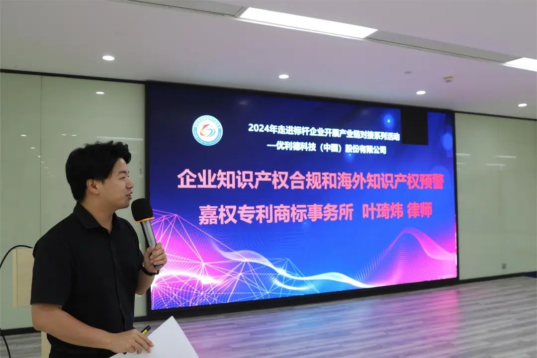 嘉权专利商标事务所叶琦炜律师作“企业知识产权合规和海外知识产权预警”分享,他主要从知识产权合规管理框架、常见风险及案例、海外知识产权预警建议三大内容展开分享,结合网络热点典型案例,以案为鉴,让参会企业对常见知识产权风险以及相关合法权益的维权有了更为深刻的了解,并对出海企业的知识产权保护和防御策略给出了系统性的实务建议,为中国企业走出去保驾护航。