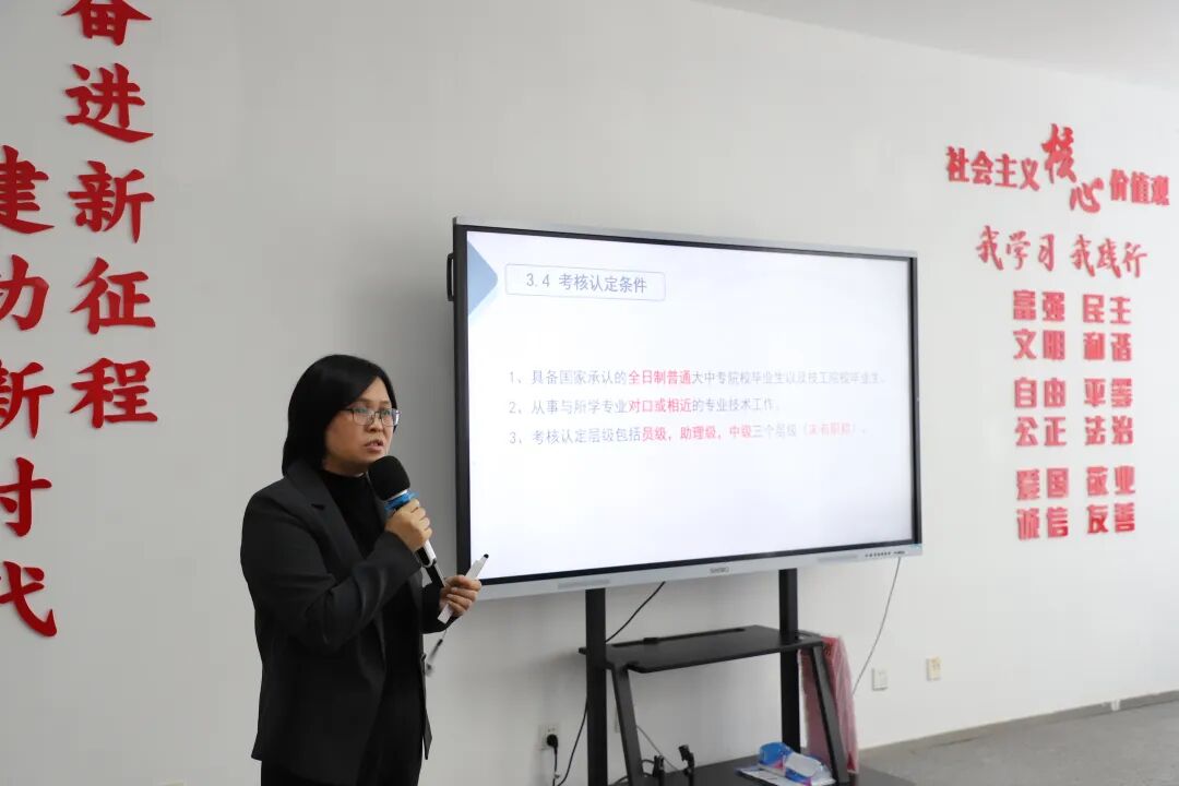 科协事业发展中心的梁桂坤,则聚焦机电、轻工、石油化工三大专业的职称评审工作展开专题分享。她从职称的定义内涵、申报的核心价值、具体申报流程以及评审常见问题四个核心维度切入,条理清晰地进行全面解读。针对申报材料准备这一关键环节,她逐项拆解填报规范与注意事项,结合典型案例深入剖析易出错的细节;同时现场回应参会人员关于申报年限计算、业绩材料认定标准等热点疑问,内容详实具体,精准贴合企业和技术人员的实际申报需求。
