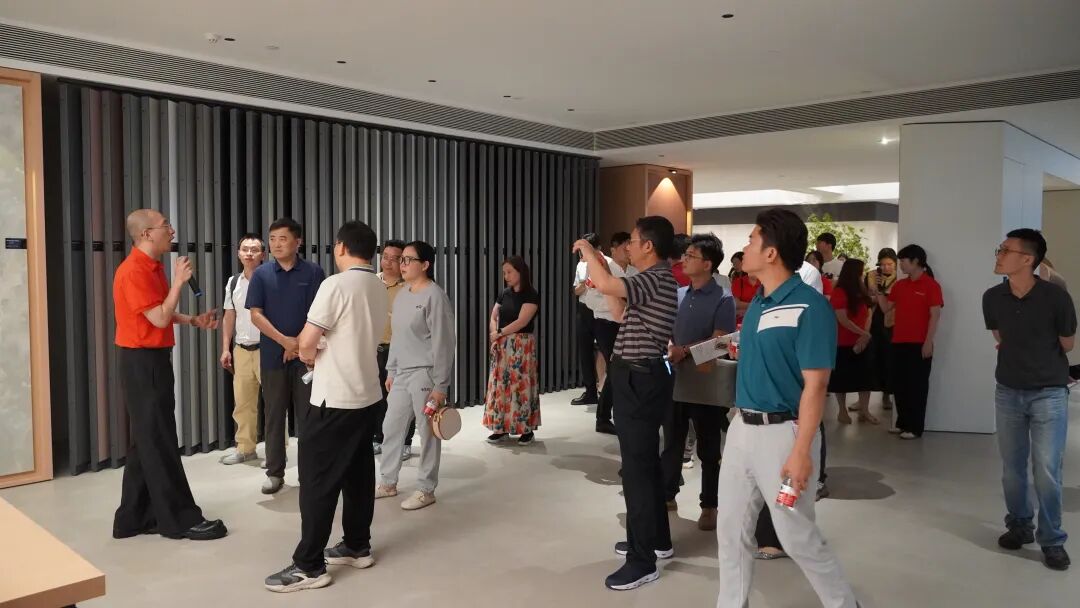 随后,参会企业代表有序参观华立股份8—9楼华富立家居艺术馆与集团综合展厅。展厅全面呈现企业前沿家居装饰材料、创新设计成果、全产业链布局及数字化发展成果,从高端饰面板、封边装饰材料到全屋家居整装解决方案,全方位展示华立股份在装饰复合材料领域的研发实力、工艺标准与品牌优势。在沉浸式参观过程中,大家近距离感受上市企业规范化管理、精细化生产与品牌化运营成果,直观了解行业前沿产品技术与发展趋势,为后续产业协同合作奠定直观认知基础。