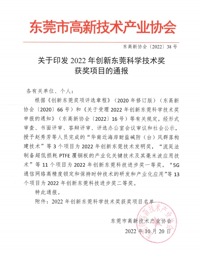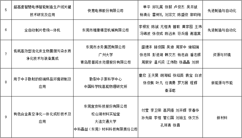 附件:2022年创新东莞科学技术奖获奖项目名单
