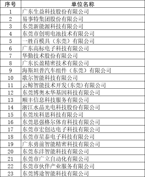 附件:松山湖已参与的企业清单